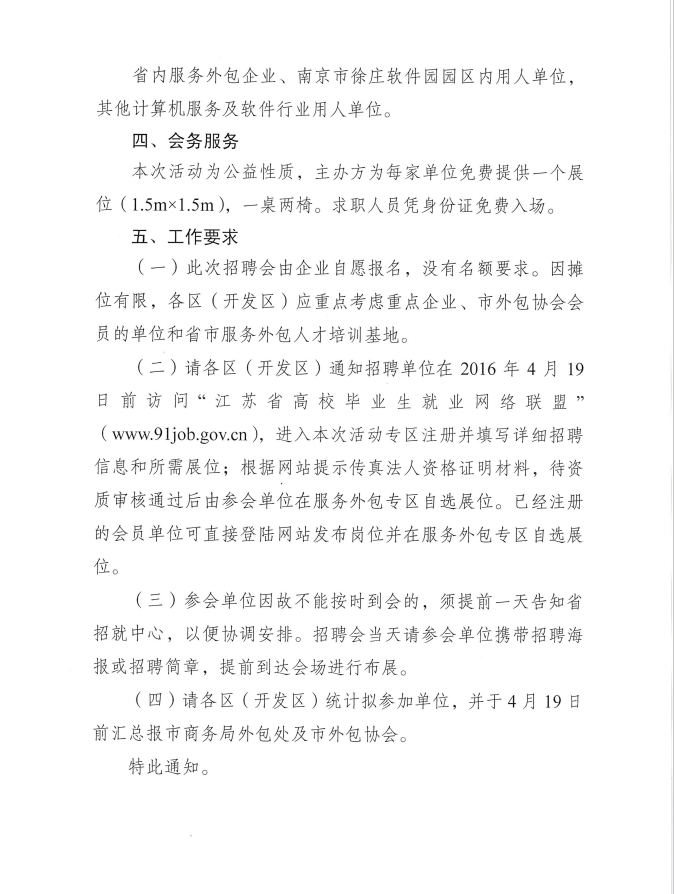 關(guān)于組織開展2016年服務(wù)外包人才專場招聘活動(dòng)的通知