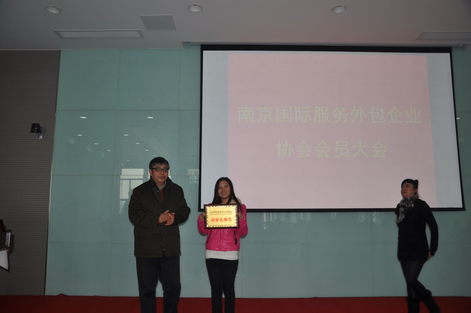 上半場,南京國際服務(wù)外包企業(yè)協(xié)會秘書長陸薇拉女士,向各會員單位匯報了協(xié)會2014年度的主要工作,并得到了各會員單位對協(xié)會工作的肯定。匯報結(jié)束后,由南京嘉環(huán)科技有限公司、江蘇萬和計算機(jī)培訓(xùn)中心、南京愛德印刷有限公司、江蘇謀士在仁人才管理咨詢股份有限公司等5家企業(yè)參加了“‘百企巡展’系列活動三”的推介活動。推介結(jié)束后,南京市優(yōu)壹職業(yè)培訓(xùn)學(xué)校、南京錦創(chuàng)科技股份有限公司、南京軟通動力信息技術(shù)服務(wù)有限公司、南京貝龍通信科技有限公司、江蘇謀士在仁人才管理咨詢股份有限公司、南京瑞科翻譯有限公司、南京皓都信息科技有限公司等7家企業(yè)參加了授牌儀式。